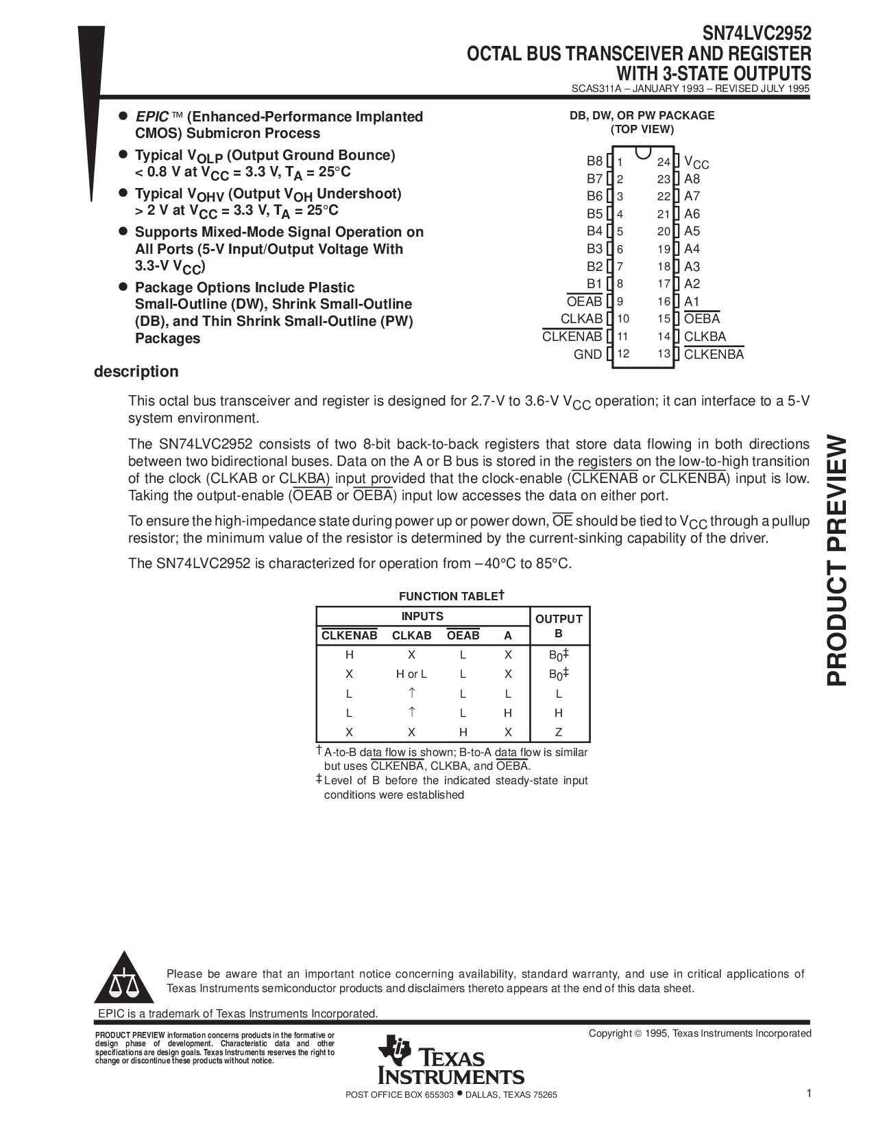 这 sn74lvc2952 由 的 两个 8-有点 背靠背 寄存器 那 商店 数据 流动 入点 两者都有 方向