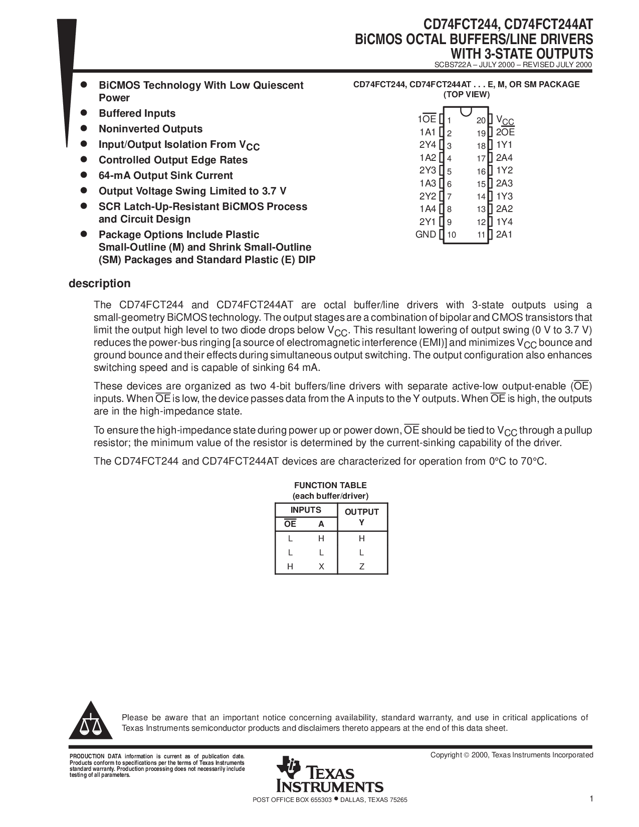 这 cd74fct244 和 cd74fct244at 是 八进制 缓冲区/线 驱动程序 与 3-州 产出 使用 一个