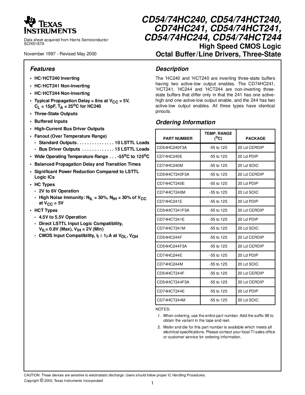 CD54HC244F3A -55 至 125 20 ld cerdip