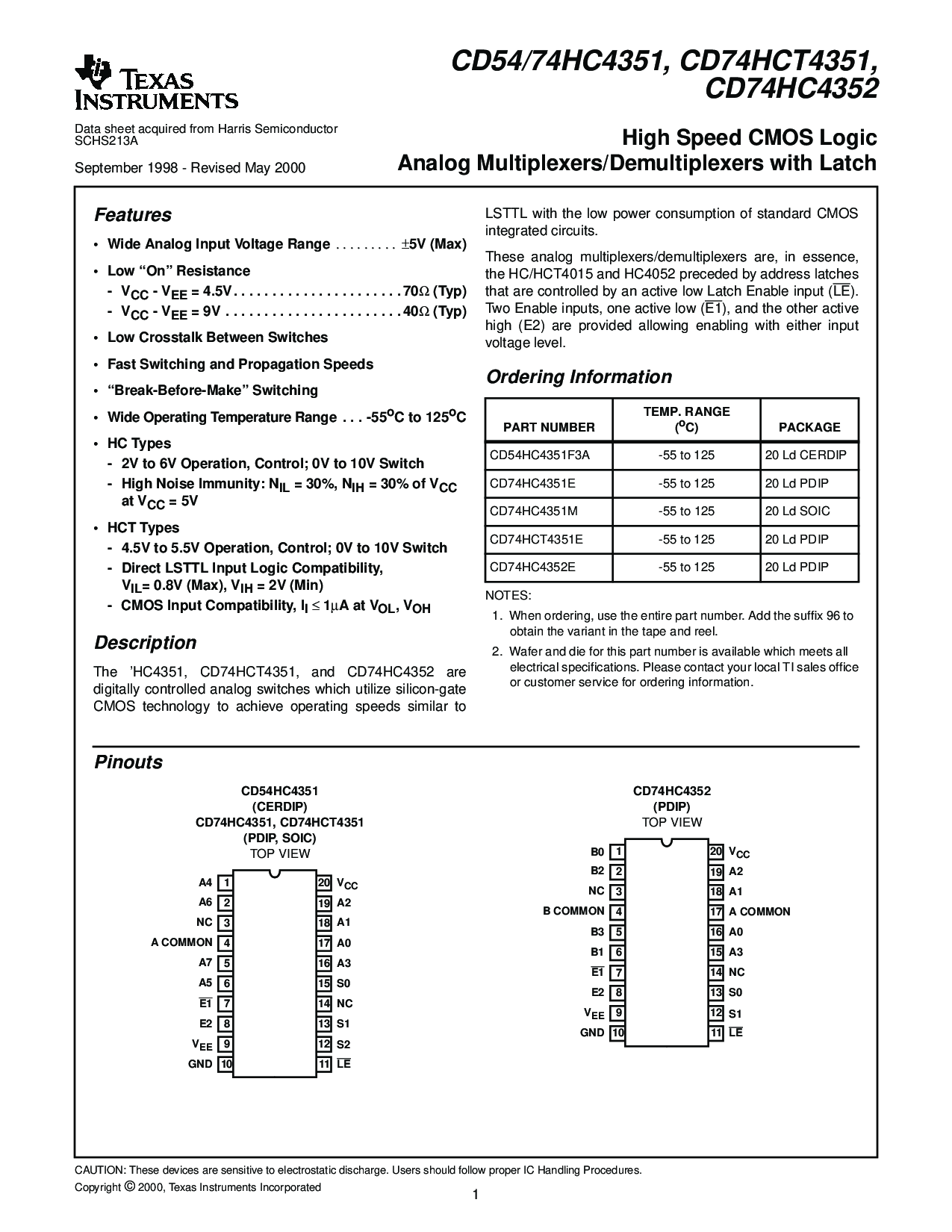 这 ’hc4351, cd74hct4351, 和 CD74HC4352 是