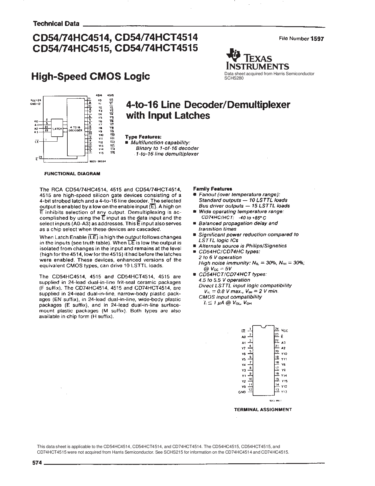 cd74hct4515 是 不 获得 从 harris 半导体. 请参见 schs215 用于 信息 开启 这 cd74hc4514 和 cd74hc4515.