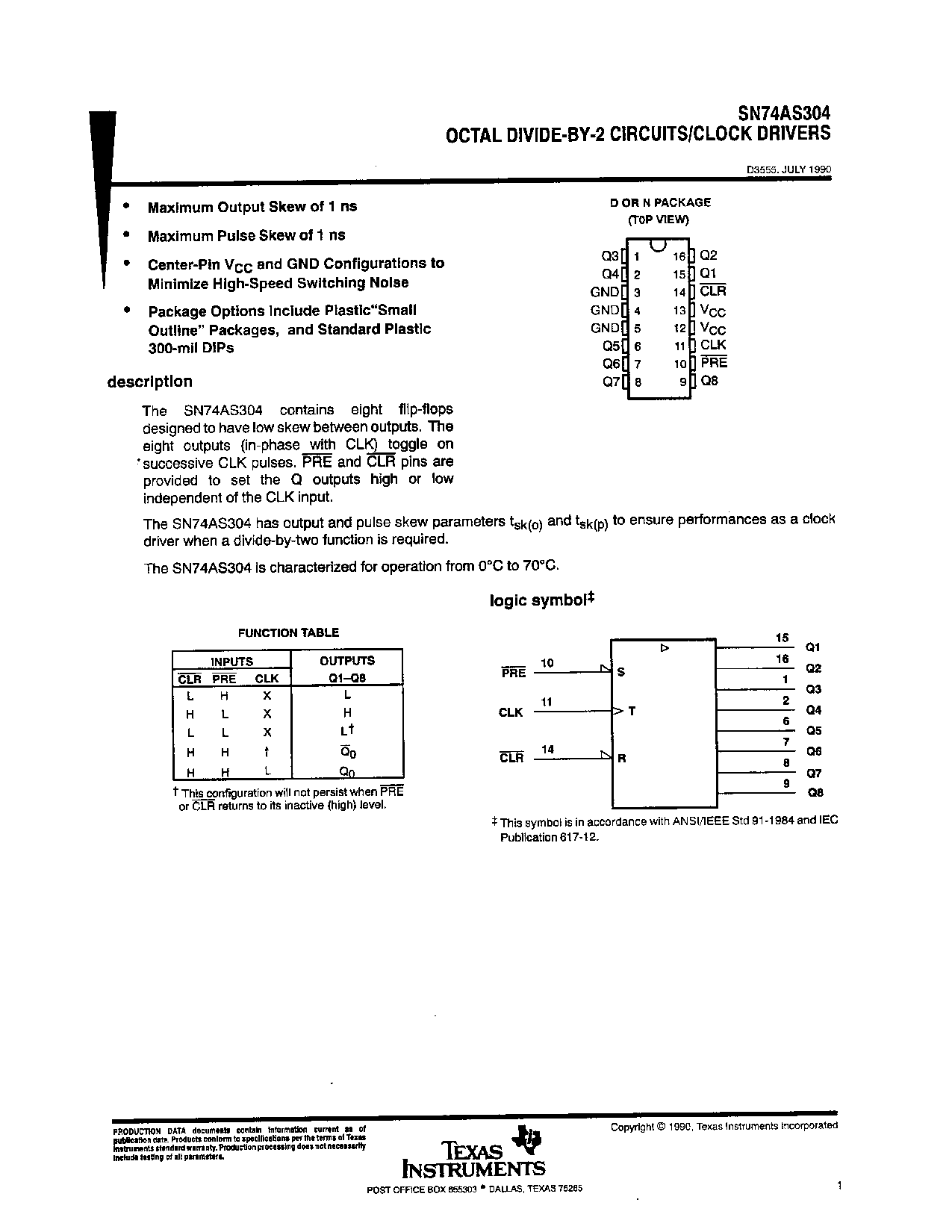 OCTAL DIVIDE-BY-2 CIRCUTTS/CLOCK DRIVERS