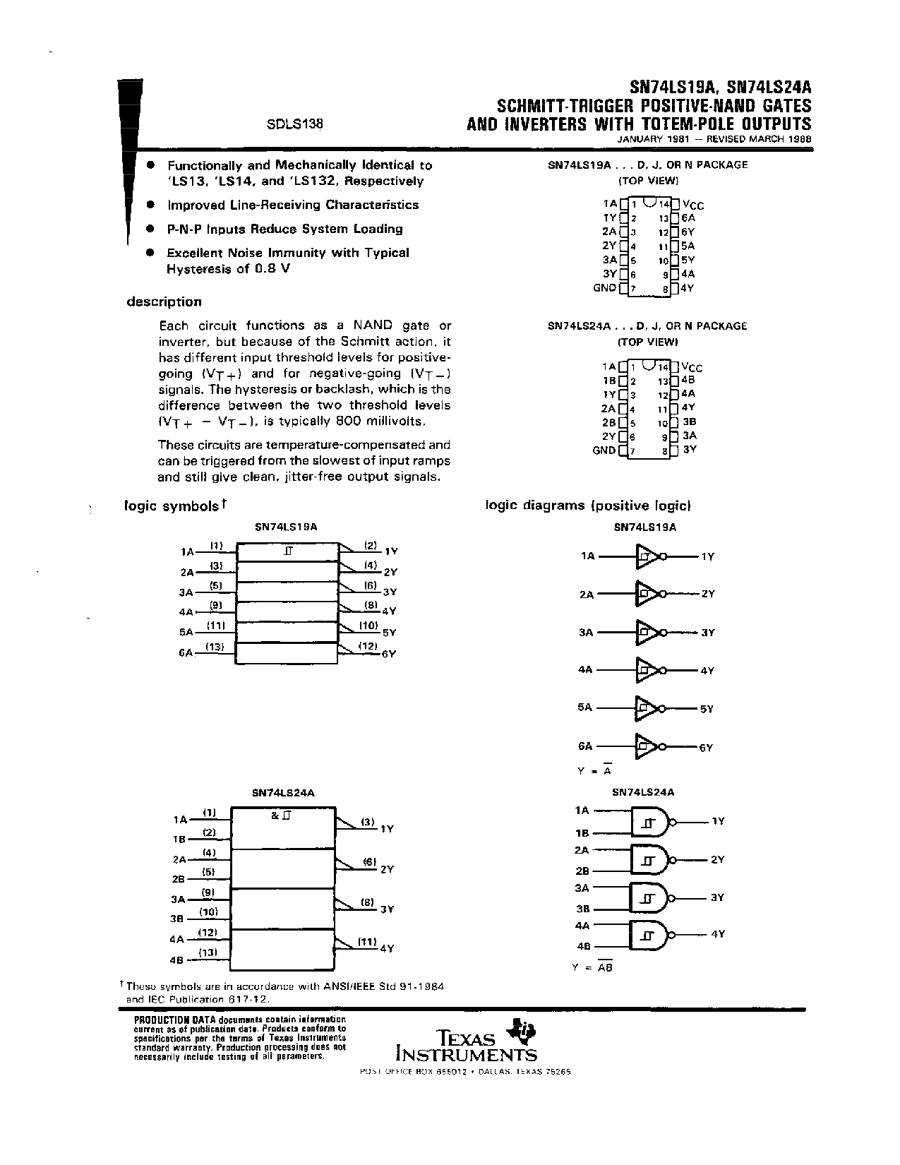 SCHMITT-TRIGGER POSITIVE-NAND GATES AND INVERTERS WITH TOTEM-POLE OUTPUTS