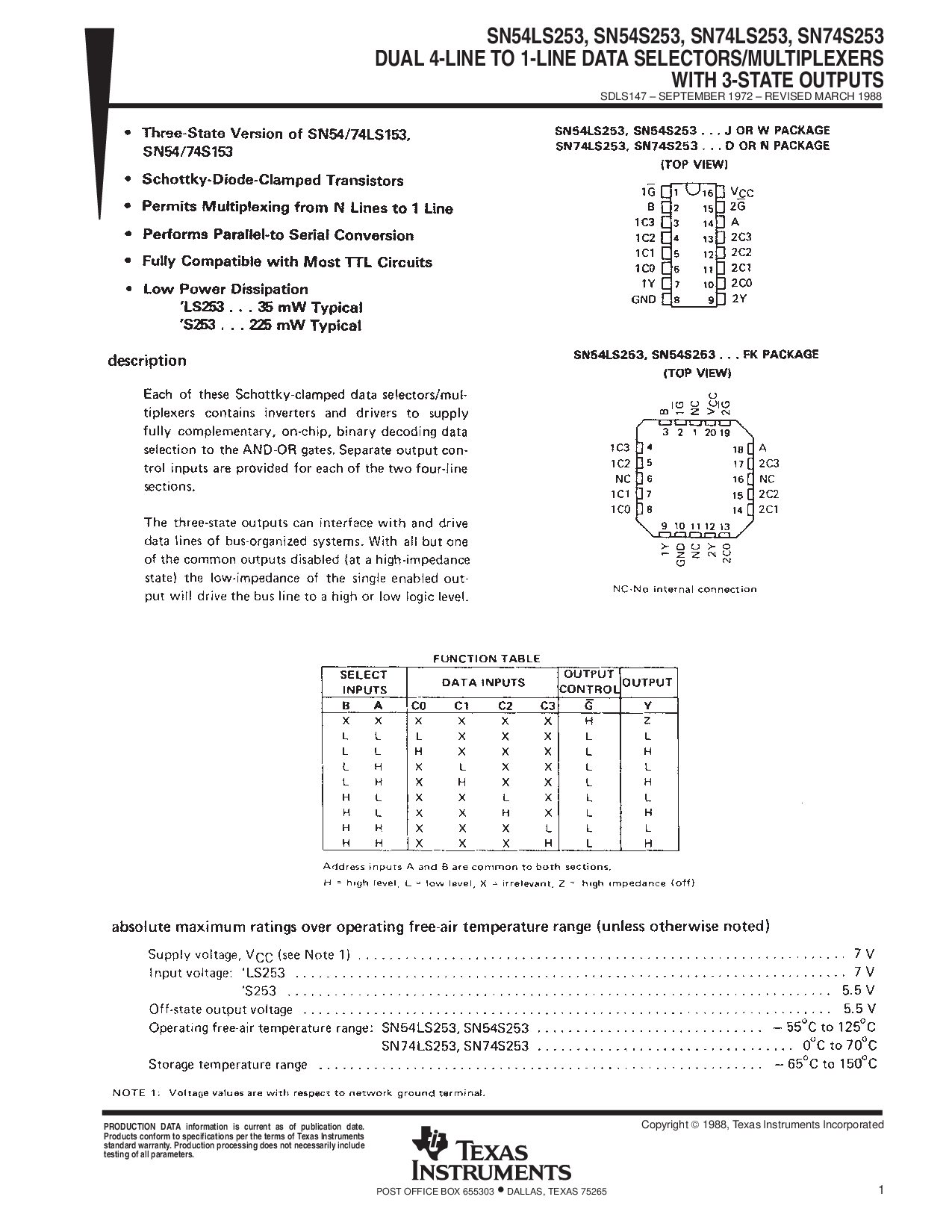 sn54ls253, sn54s253, sn74ls253, sn74s253