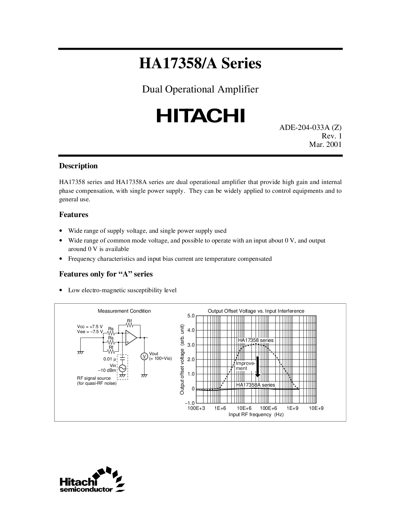 ha17358 系列 和 ha17358a 系列 是 双 运营 放大器 那 提供 高 增益 和 内部