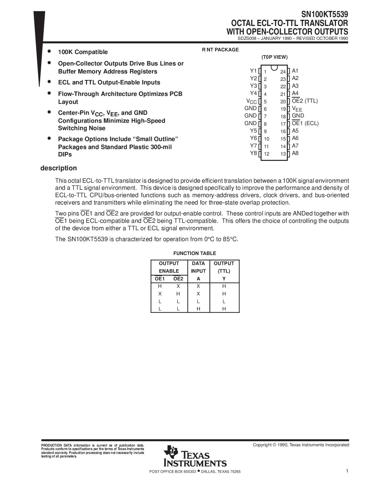 这个 八进制 ecl-至-ttl 翻译器 是 设计 至 提供 高效 翻译 之间 一个 100k 信号 环境