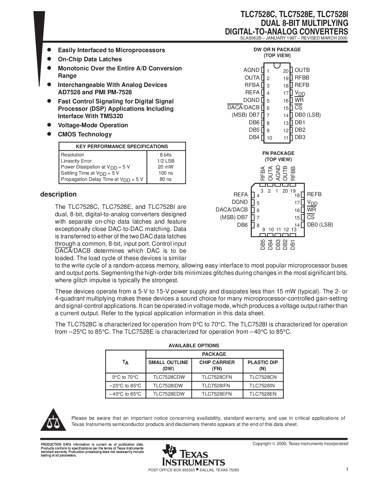 c TLC7528EDW TLC7528EFN TLC7528EN