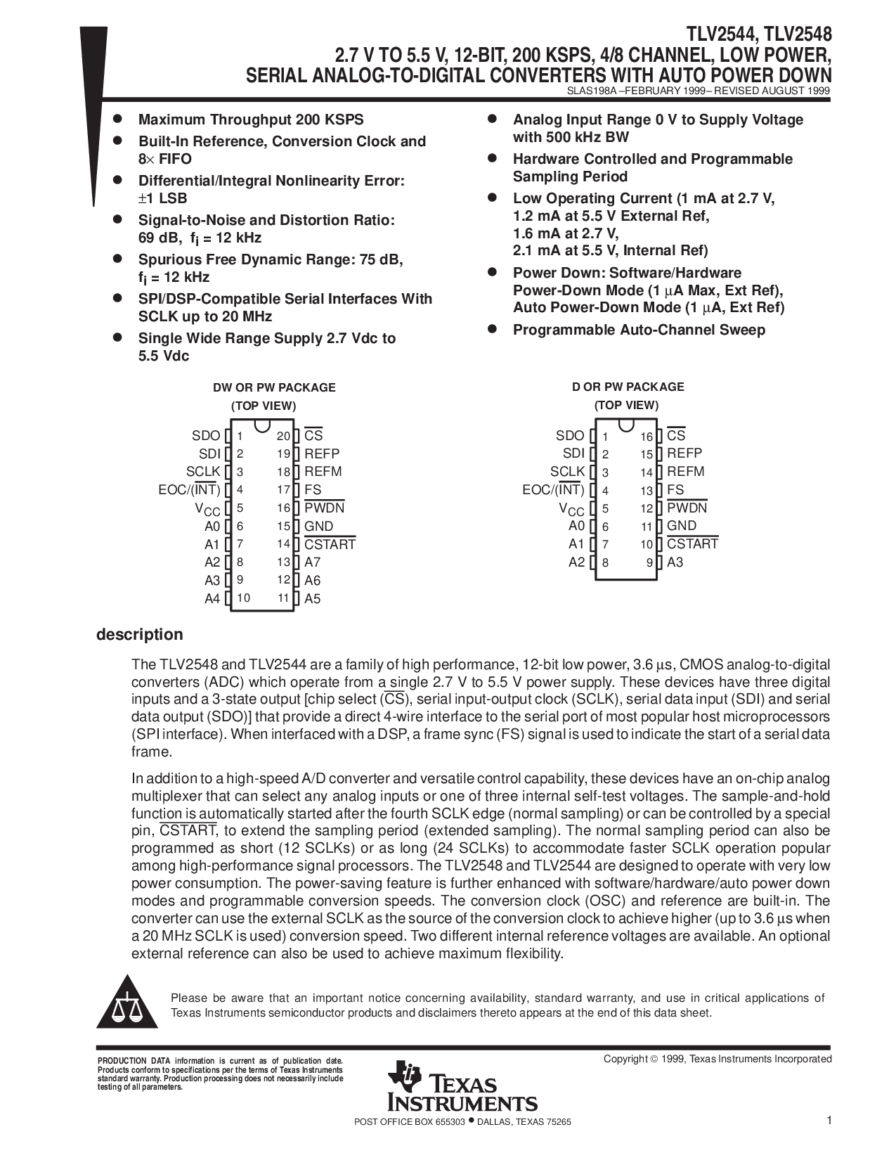 在 高性能 信号 处理器. 这 tlv2548 和 tlv2544 是 设计 至 操作 与 很 低