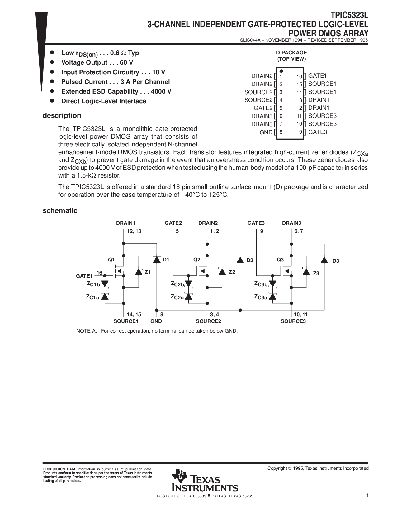 这 tpic5323l 是 提供 入点 一个 标准 16-管脚 小轮廓 表面贴装 (d) 包装 和 是 表征