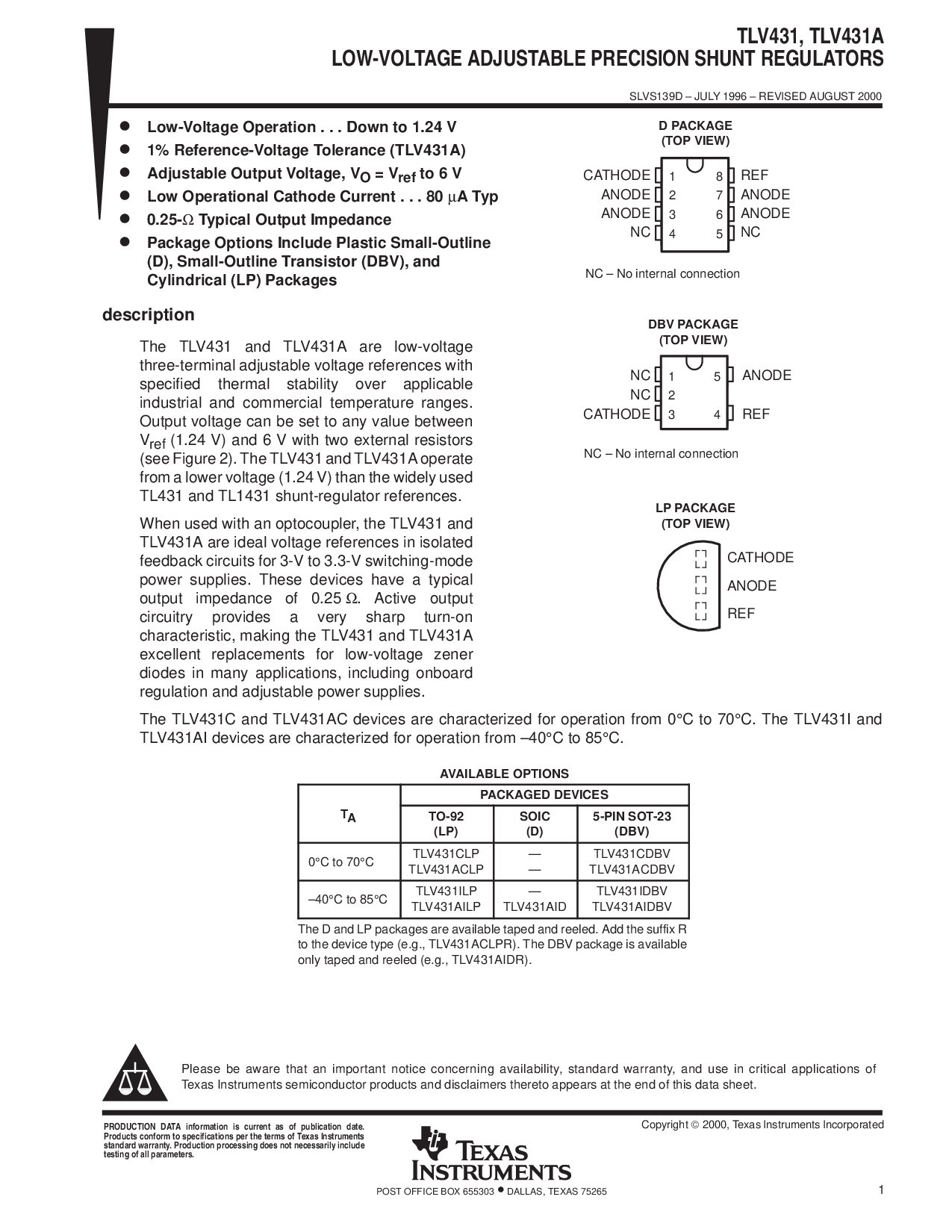 至 这 设备 类型 (e?.g., tlv431aclpr). 这 dbv 包装 是 可用