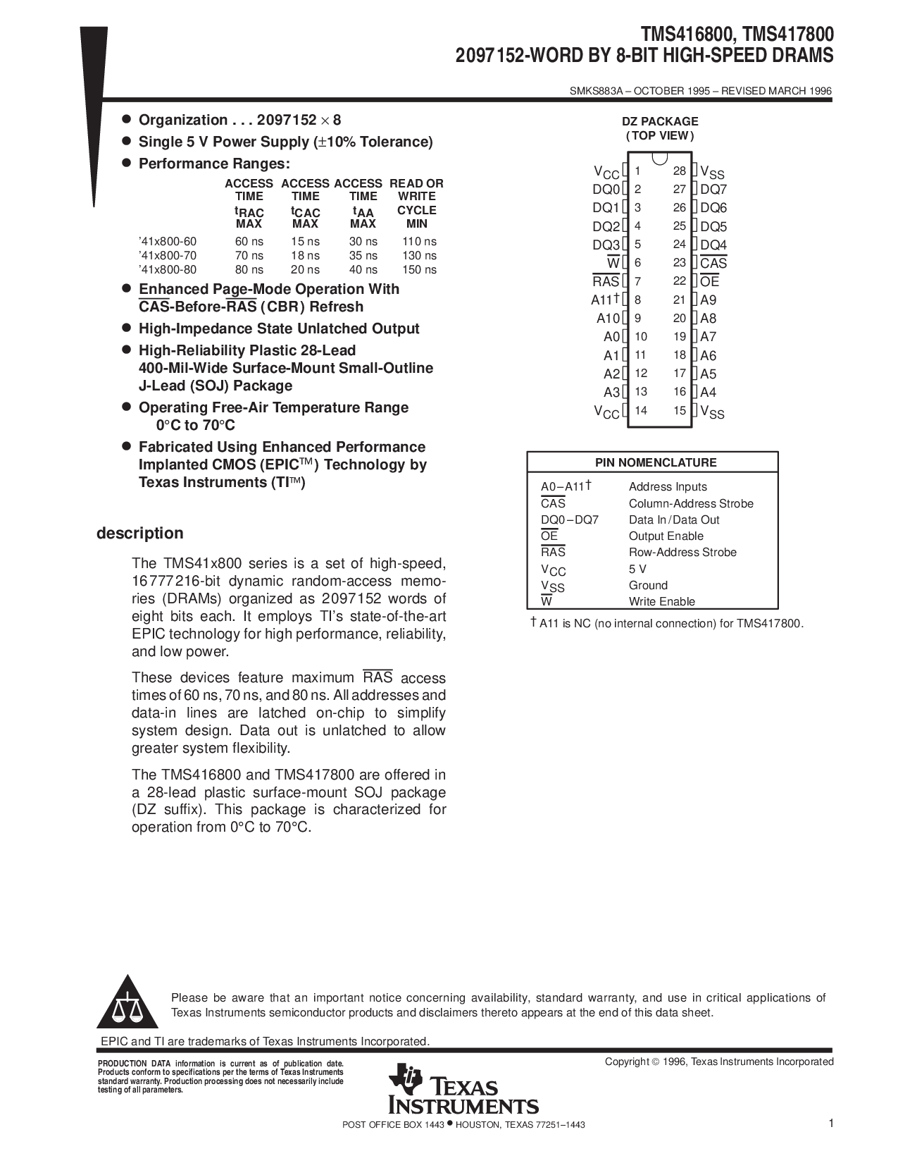 1996, 德州 仪器仪表 股份公司