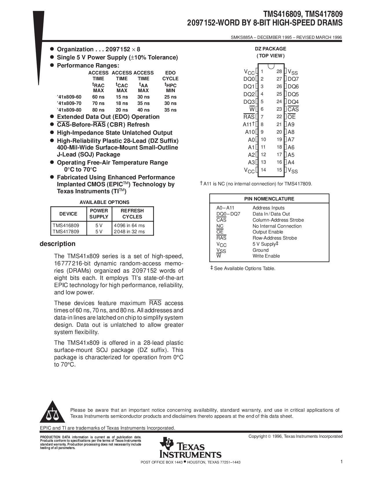 1996, 德州 仪器仪表 股份公司