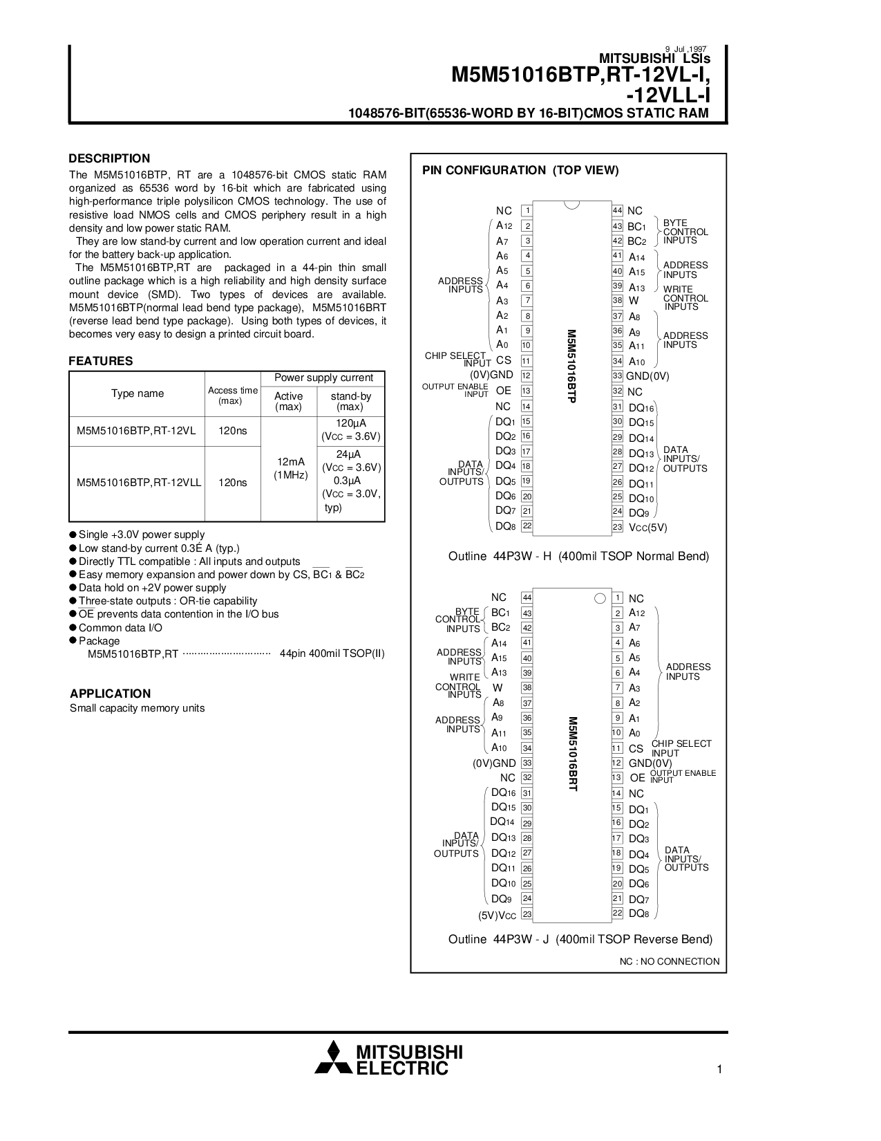 m5m51016btp(正常 铅 弯管 类型 包装), m5m51016brt