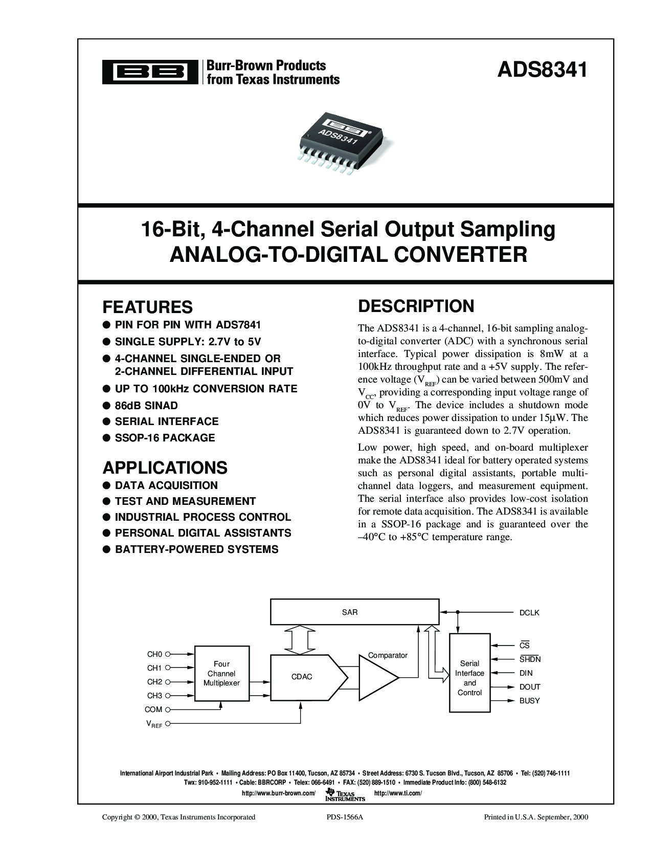 用于 远程 数据 收购. 这 ads8341 是 可用