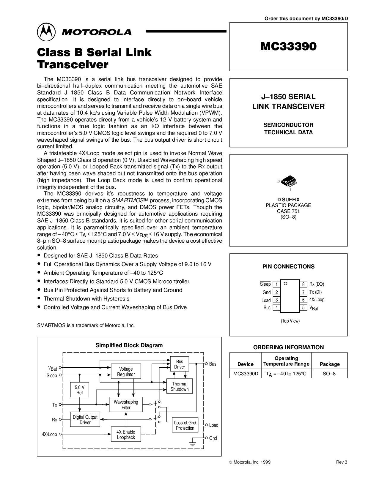 这 mc33390 是 一个 串行 链接 总线 收发器 设计 至 提供