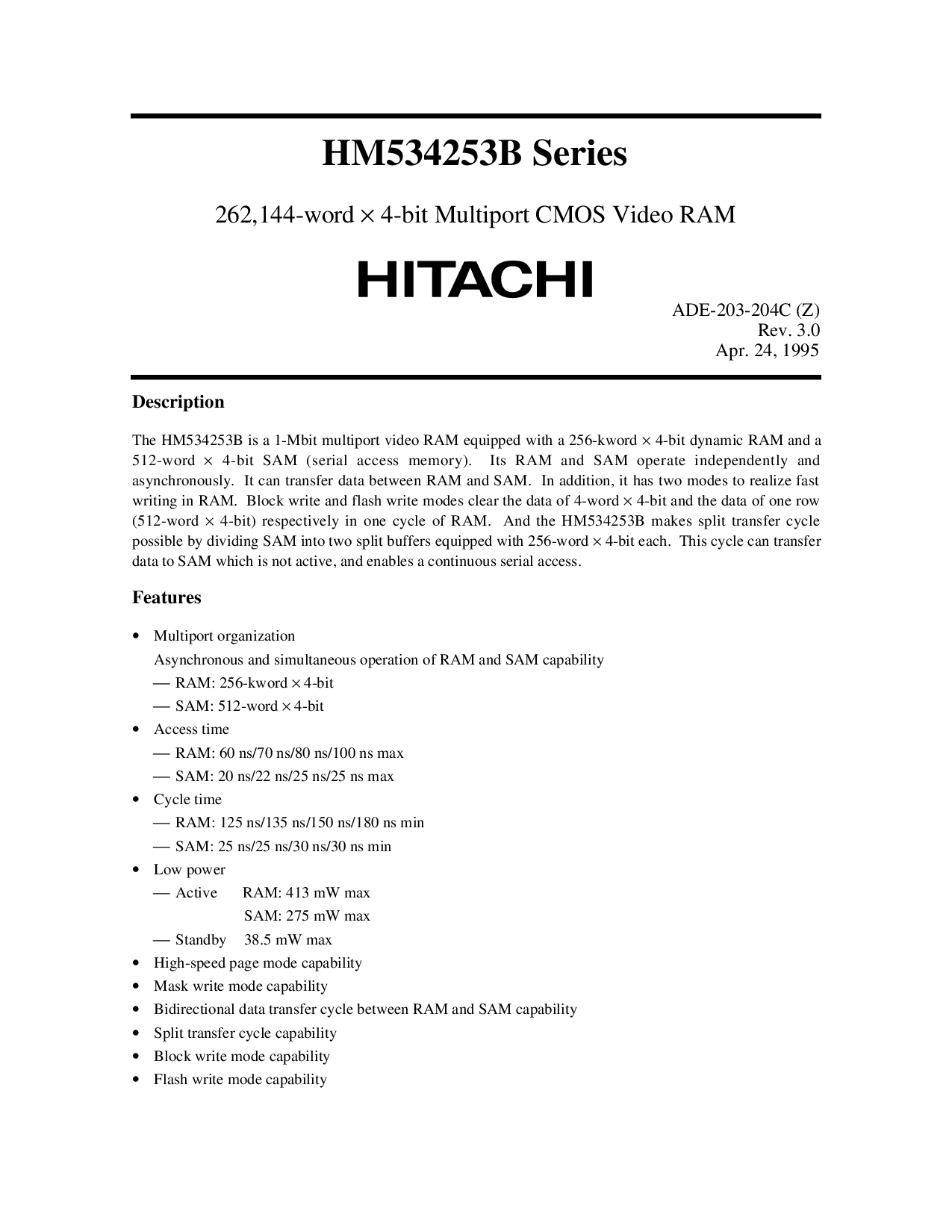 这 hm534253b 是 一个 1-mbit multiport 视频 ram 配备 与 一个 256-kword