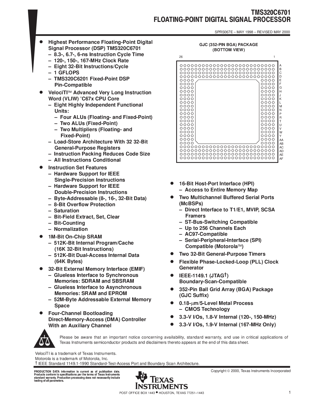 浏览型号TMS320C6701的Datasheet PDF文件第3页