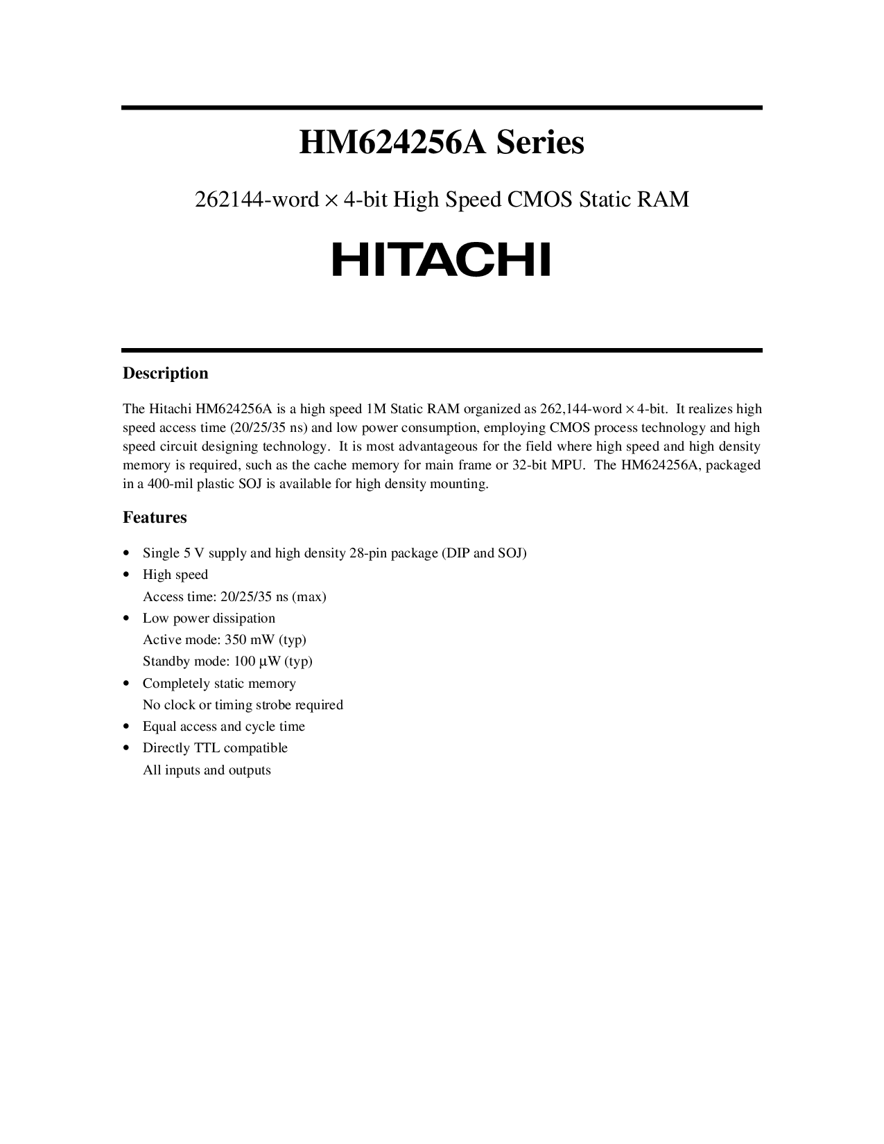 这 hitachi hm624256a 是 一个 高 速度 1m 静态 ram 有组织的 作为 262,144-字