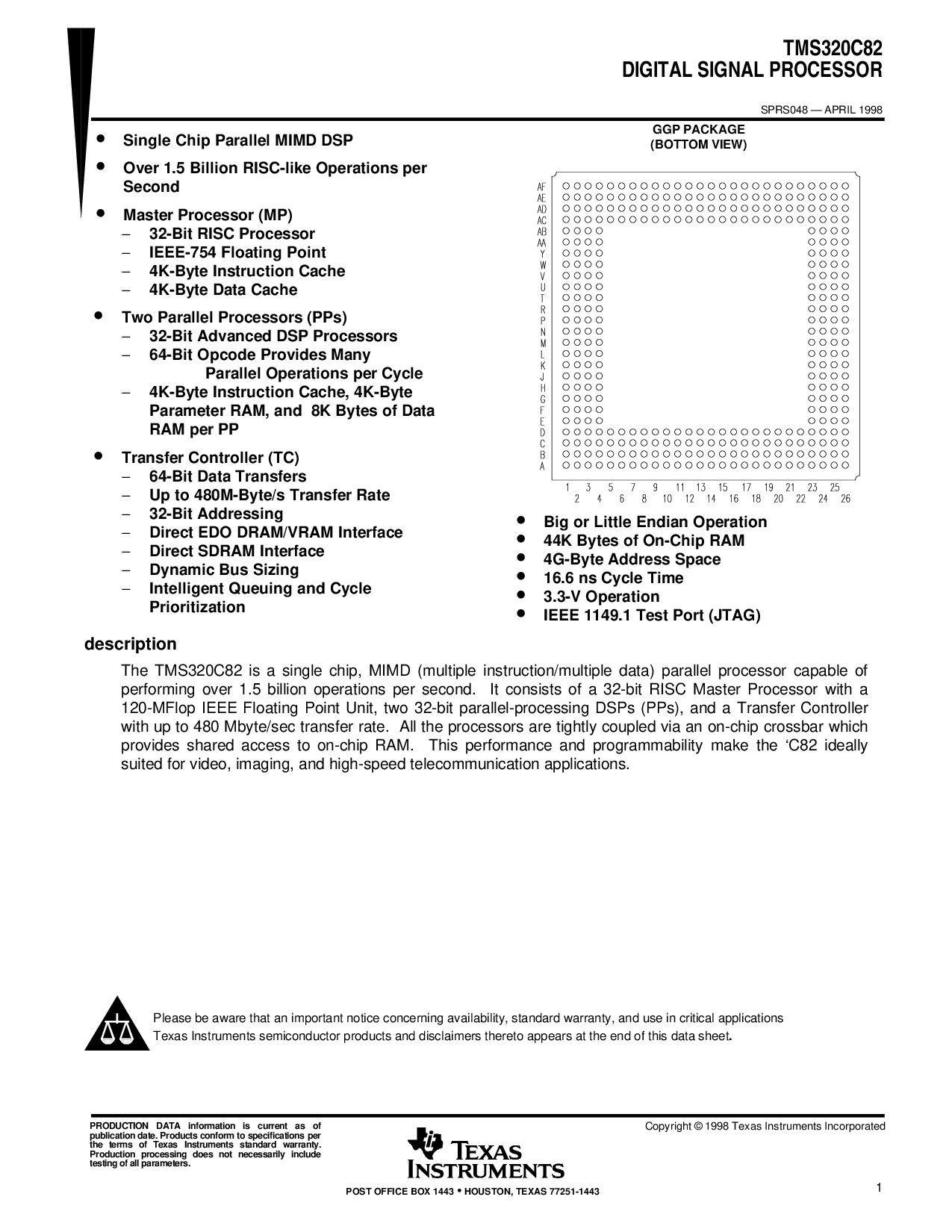 这 tms320c82 是 一个 单独 芯片, mimd (多个 说明书/多个 数据) 平行 处理器 有能力 的