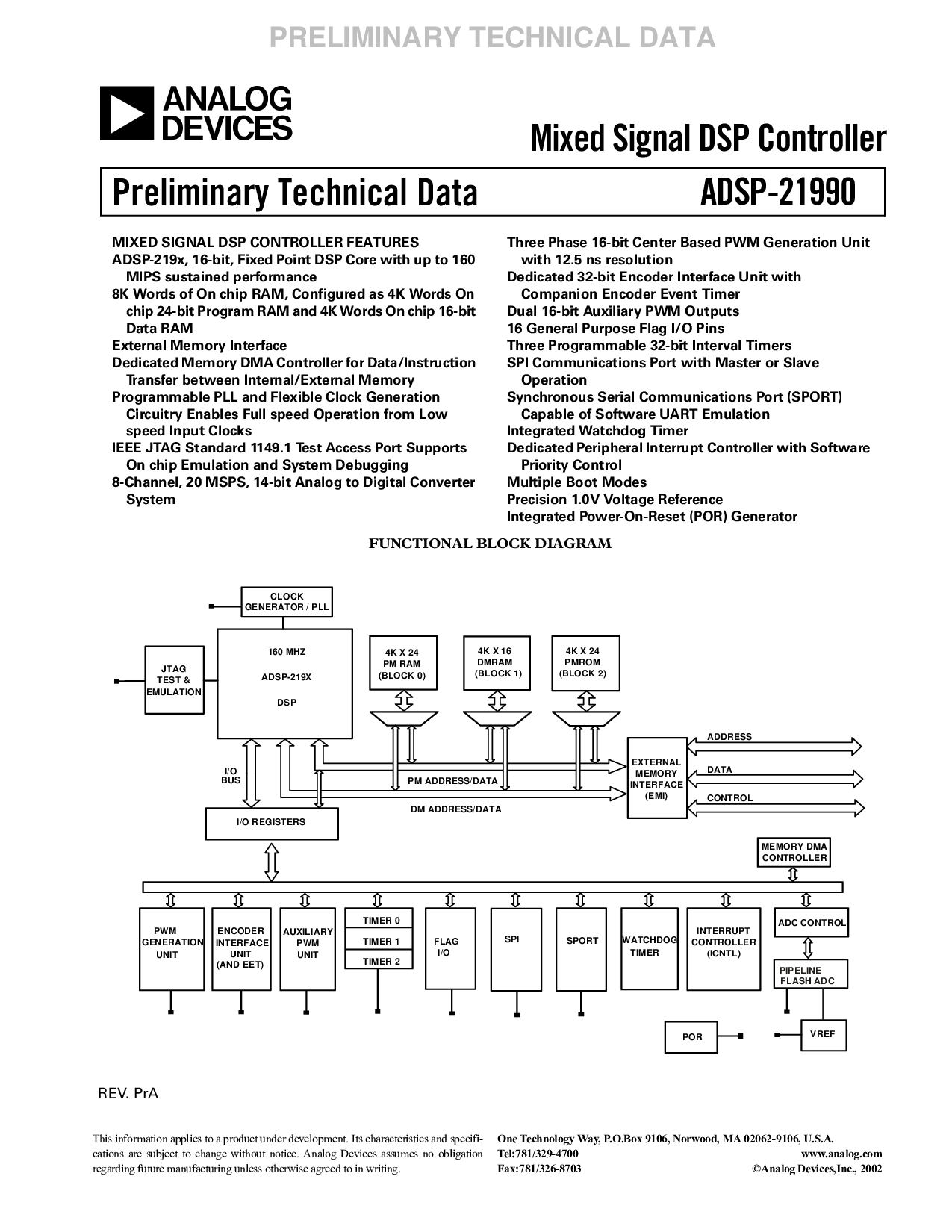 adsp-219x, 16-有点, 固定 点 dsp 核心 与 向上 至 160