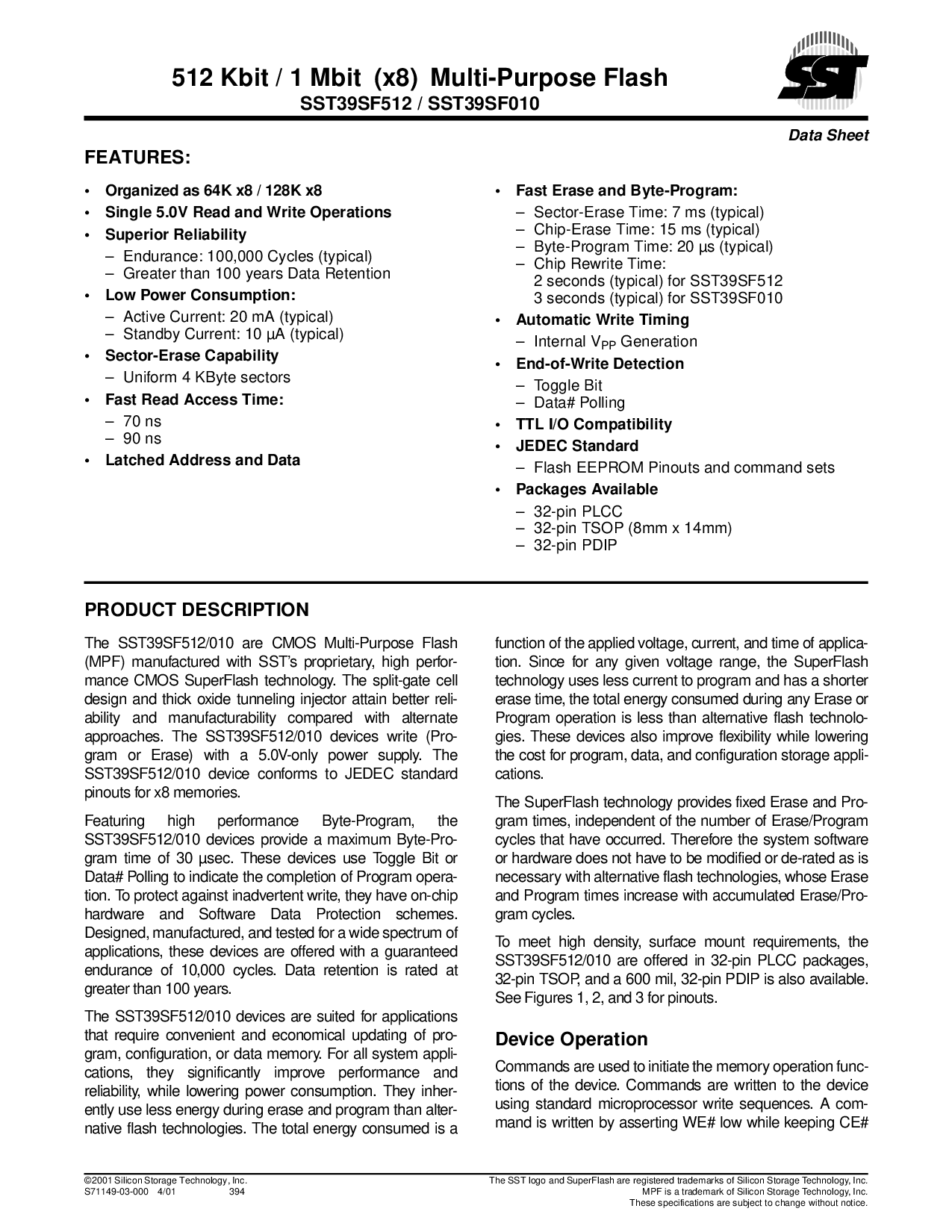 浏览型号SST39SF010-70-4C-PH 的Datasheet PDF文件第2页