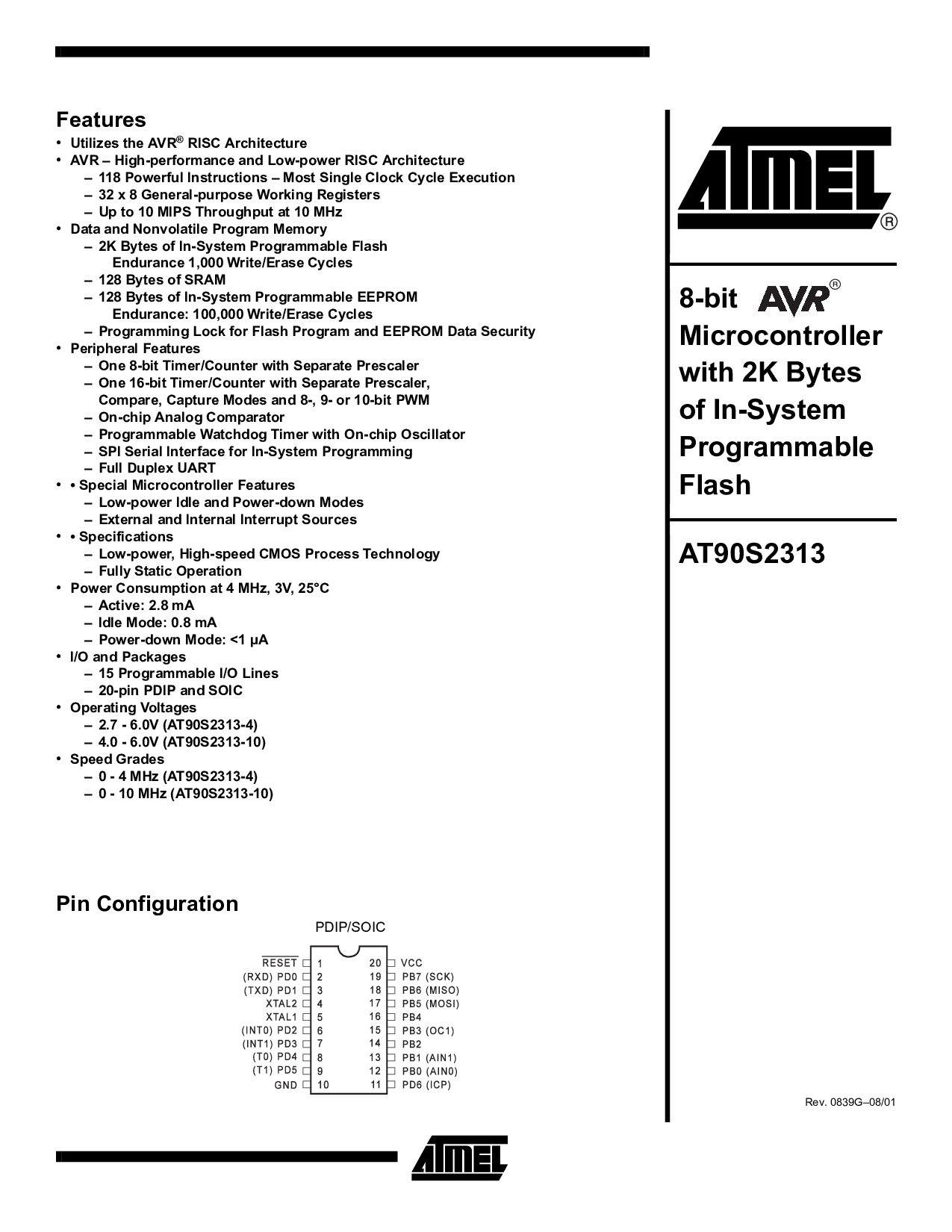 浏览型号AT90S2313-10PC 的Datasheet PDF文件第2页