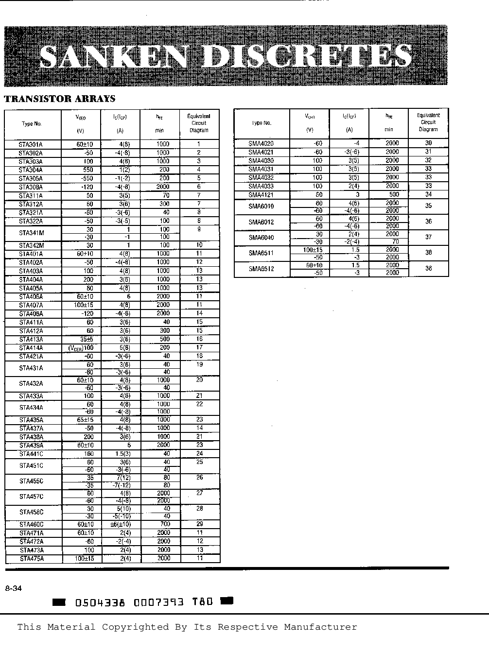 SLA1008, SLA4010, SLA4020, SLA4030, SLA4031, SLA4041, SLA4060, SLA4061, ...Transistor Arrays
