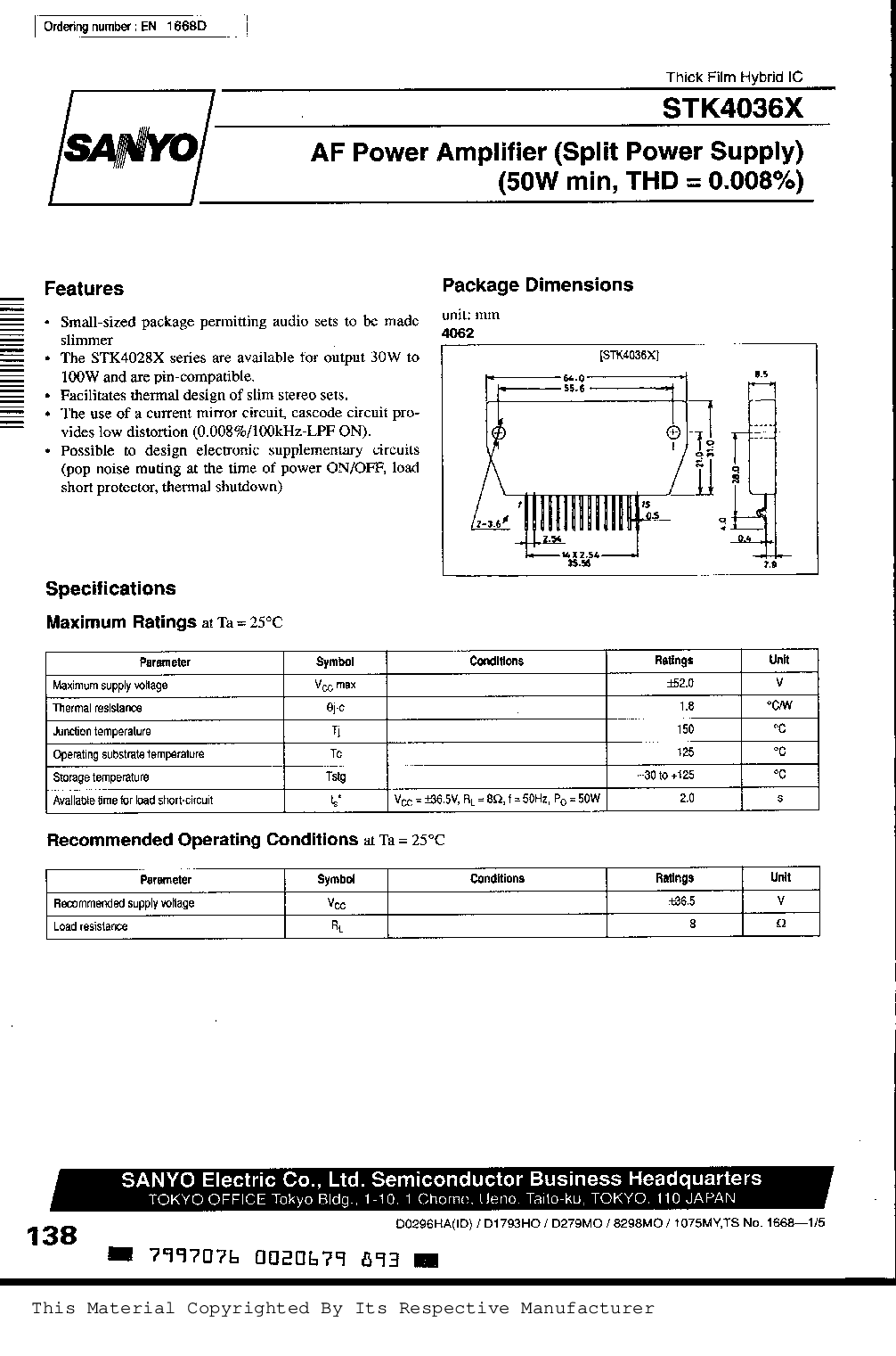 浏览型号STK4036X 的Datasheet PDF文件第4页
