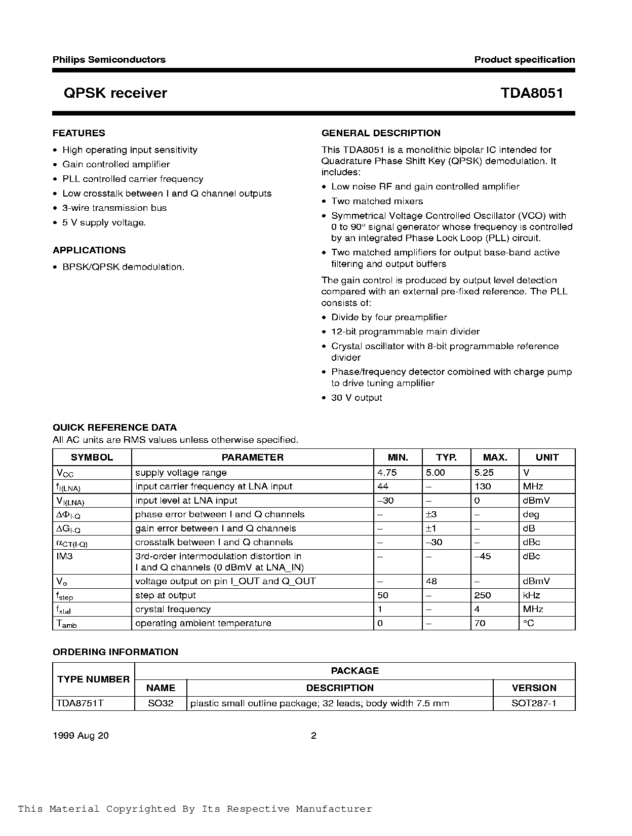 浏览型号TDA8051TD-T的Datasheet PDF文件第2页