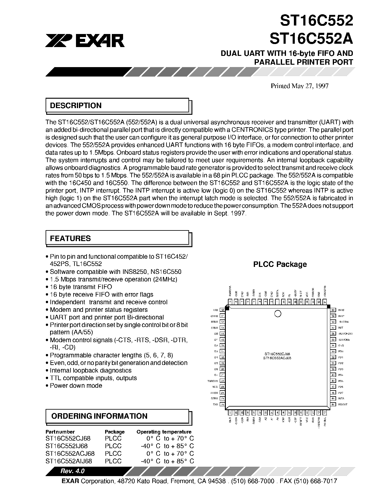 UART,CMOS,LDCC,68PIN,PLASTIC
