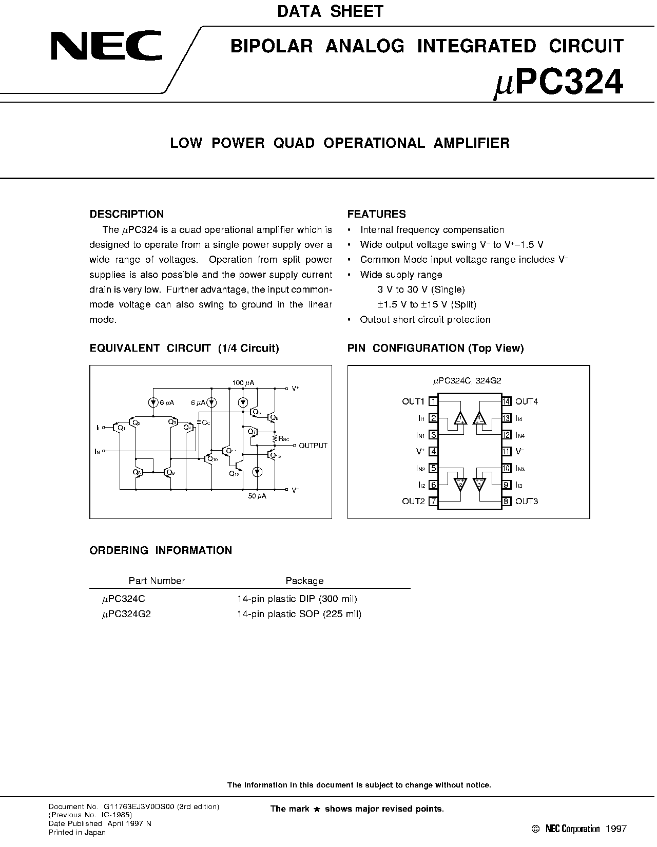 OP-AMP,QUAD,BIPOLAR,DIP,14PIN,PLASTIC