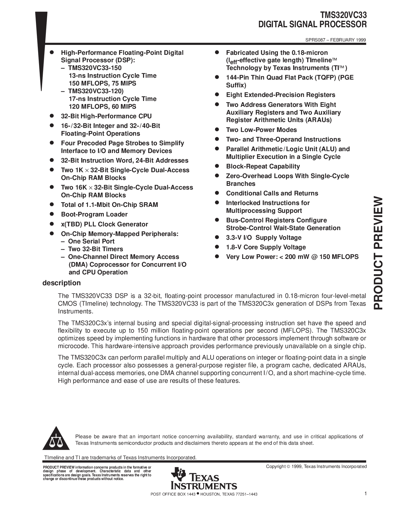 cmos (时间线) 技术. 这 tms320vc33 是 零件 的 这 tms320c3x 世代 的 dsps 从 德州