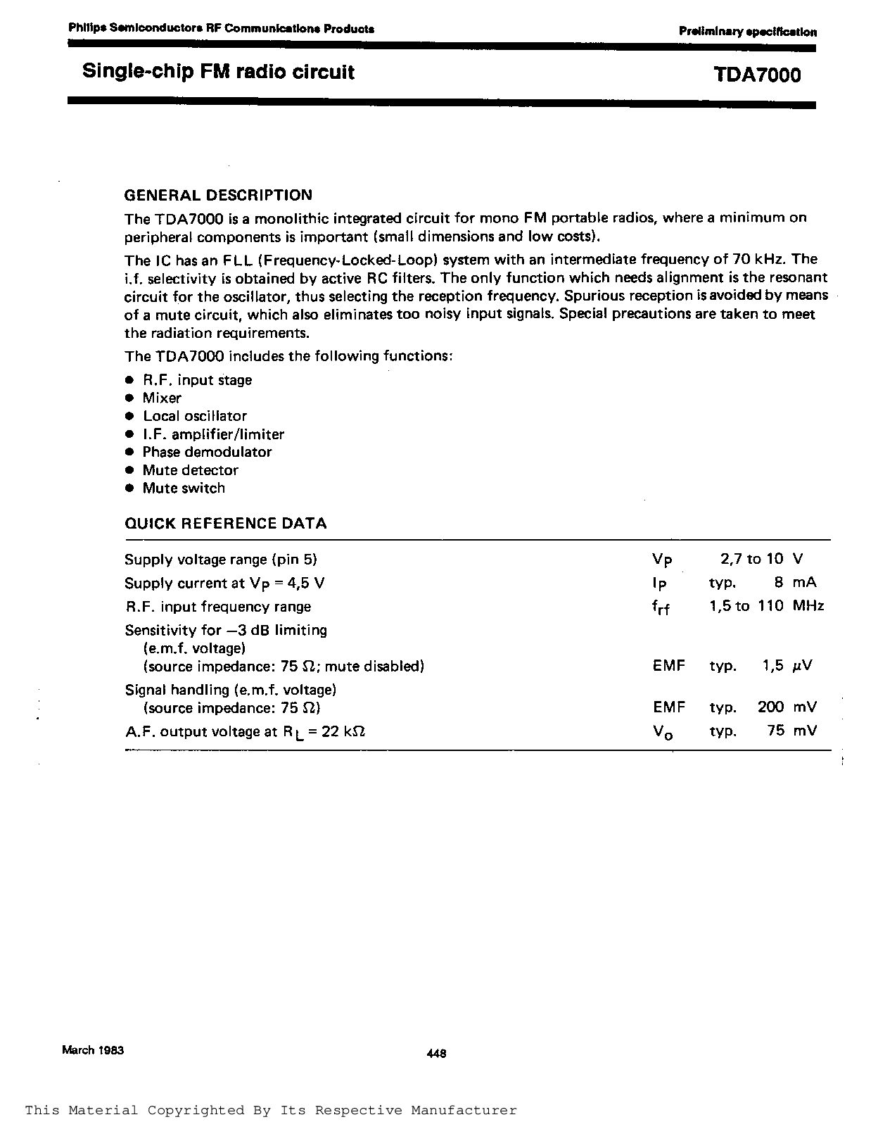 浏览型号TDA7000N的Datasheet PDF文件第3页
