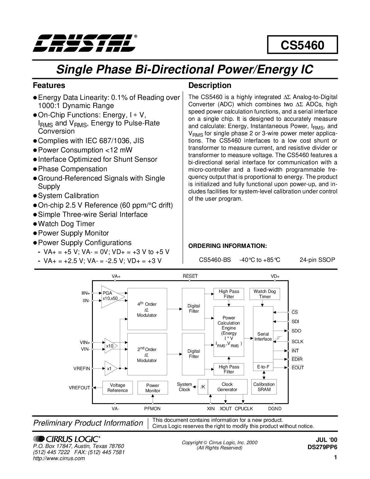 变压器 至 测量 电压. 这 cs5460 特点 一个