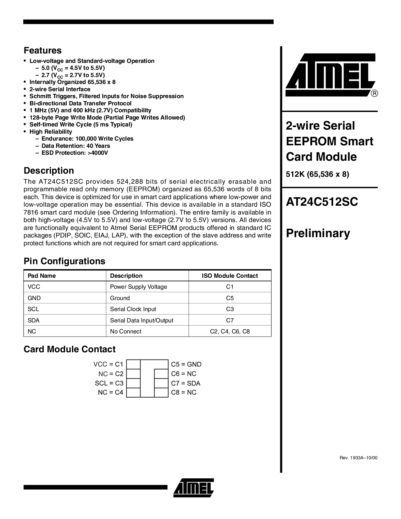 这 at24c512sc 提供 524,288 比特 的 串行 电气 可擦除 和