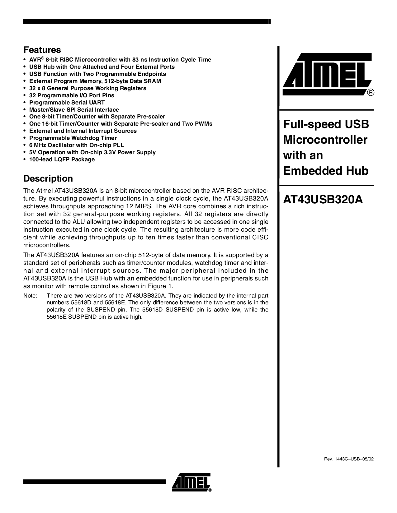 这 atmel AT43USB320A 是 一个 8-有点 微控制器 基于 开启 这 AVR RISC 建筑结构-