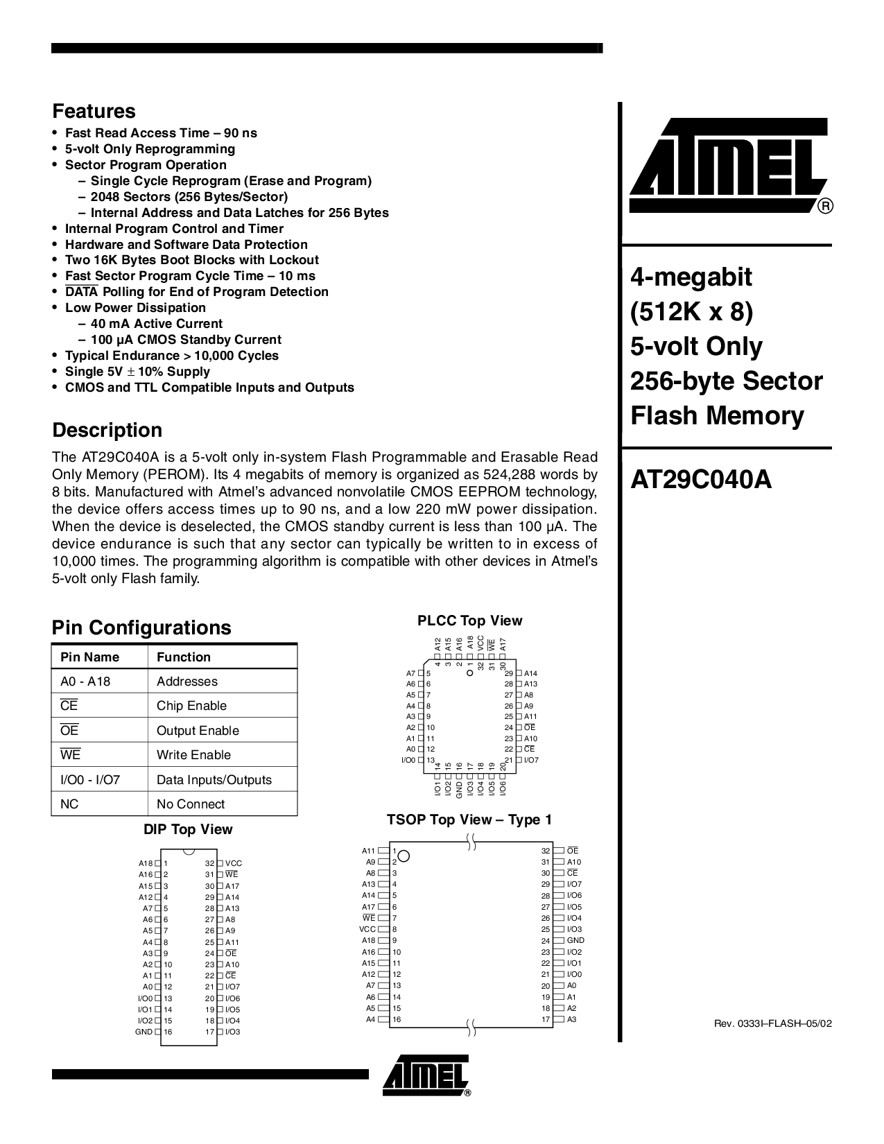 浏览型号AT29C040A 的Datasheet PDF文件第2页