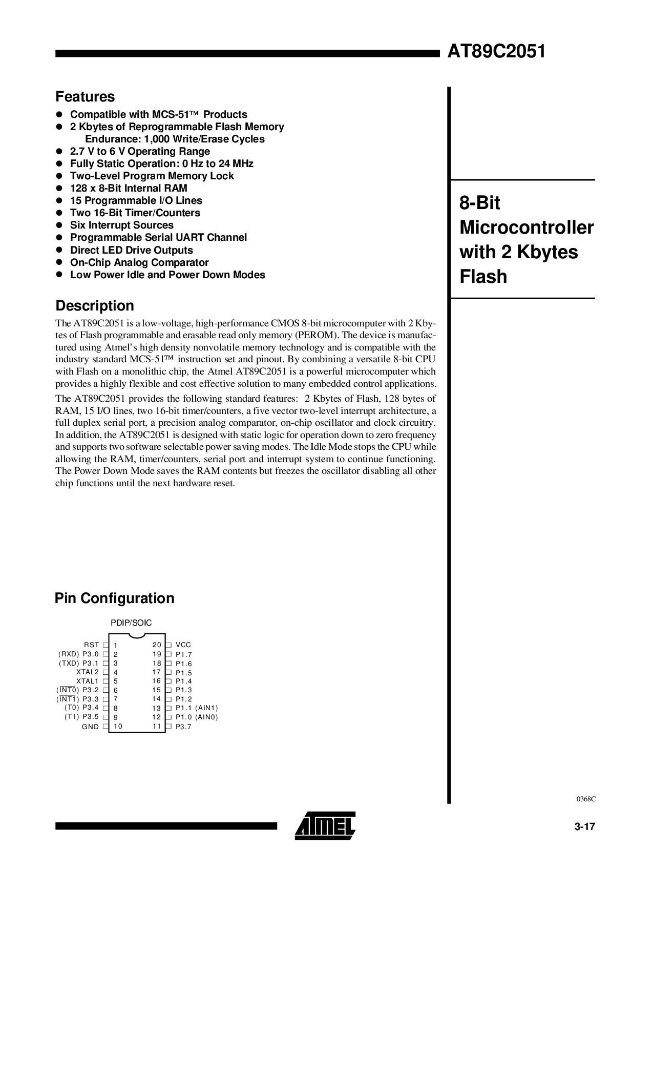 与 闪光灯 开启 一个 单片 芯片, 这 atmel at89c2051 是 一个 强大的 微型计算机 哪个