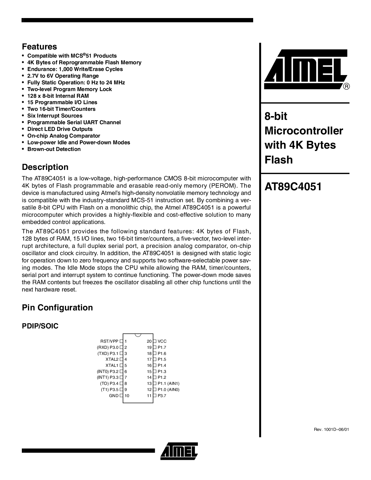 这 at89c4051 是 一个 低-电压, 高性能 cmos 8-有点 微型计算机 与