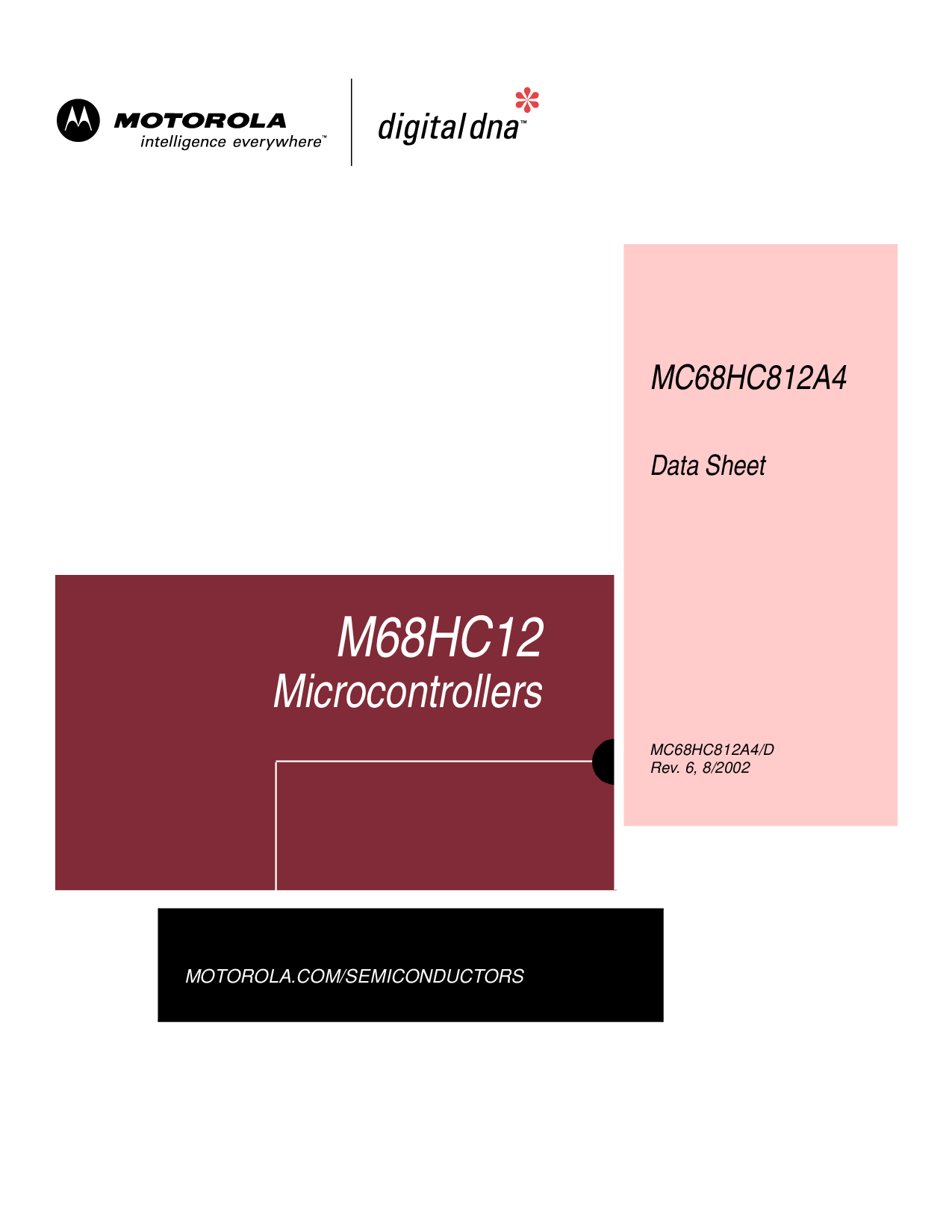 摩托罗拉.com/半导体 M68HC12 微控制器 mc68hc812a4/d rev. 6, 8/2002 MC68HC812A4 数据 工作表 | |