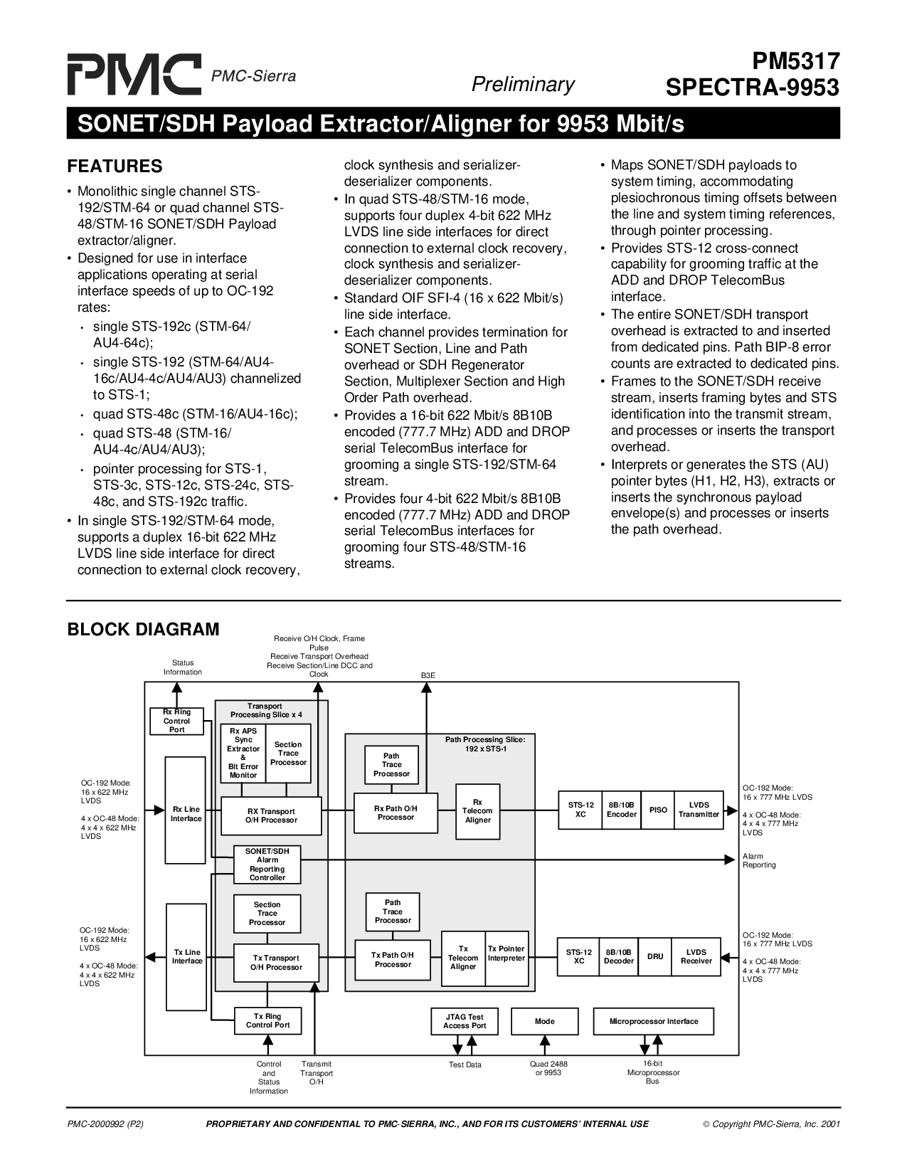 sonet/sdh 有效载荷 extractor/aligner 用于 9953 mbit/s