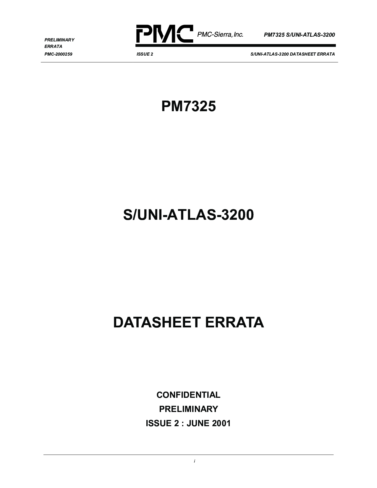 初步 pm7325 s/uni-atlas-3200 勘误表 pmc-2000259 问题 2 s/uni-atlas-3200 数据表 勘误表 我 PM7325 s/uni-atlas-3200 数据表 勘误表 CONFIDENTIAL 初步 问题 2 : 六月 2001 | |
