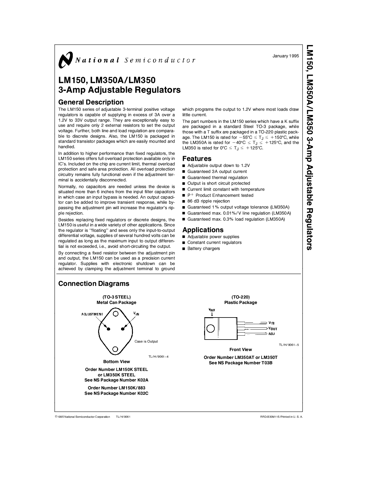 LM150 LM350ALM350 3-放大器 可调 调节器
