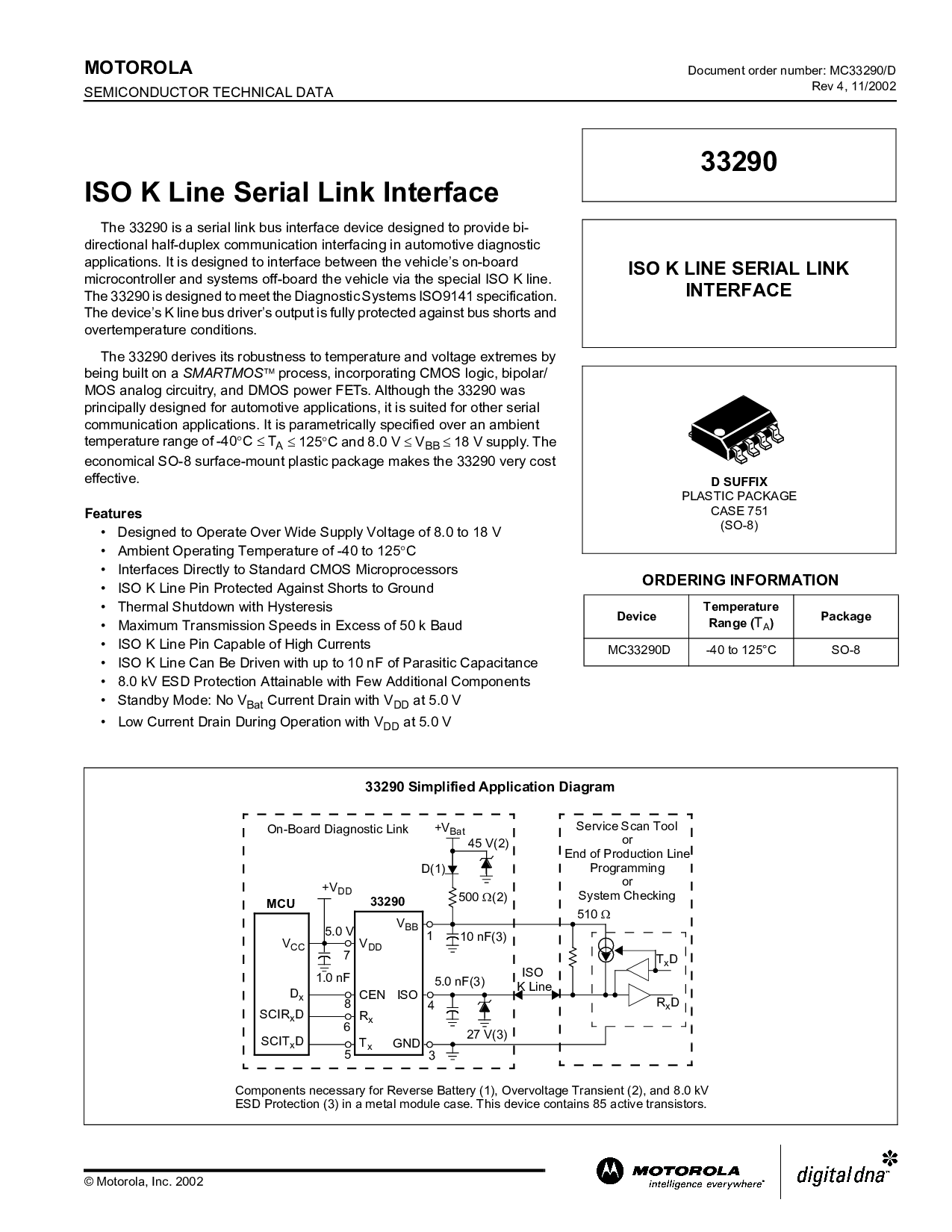 这 33290 是 设计 至 满足 这 诊断nostic 系统 iso9141 规格.