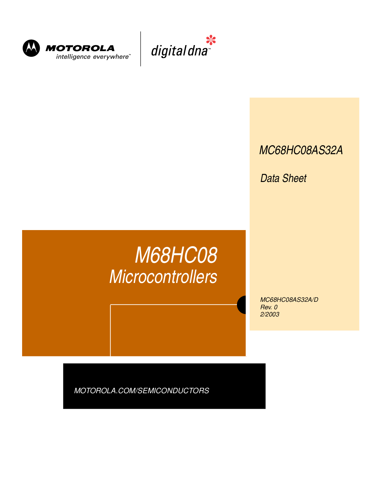 摩托罗拉.com/半导体 M68HC08 微控制器 mc68hc08as32a/d rev. 0 数据 工作表 MC68HC08AS32A 2/2003 | |