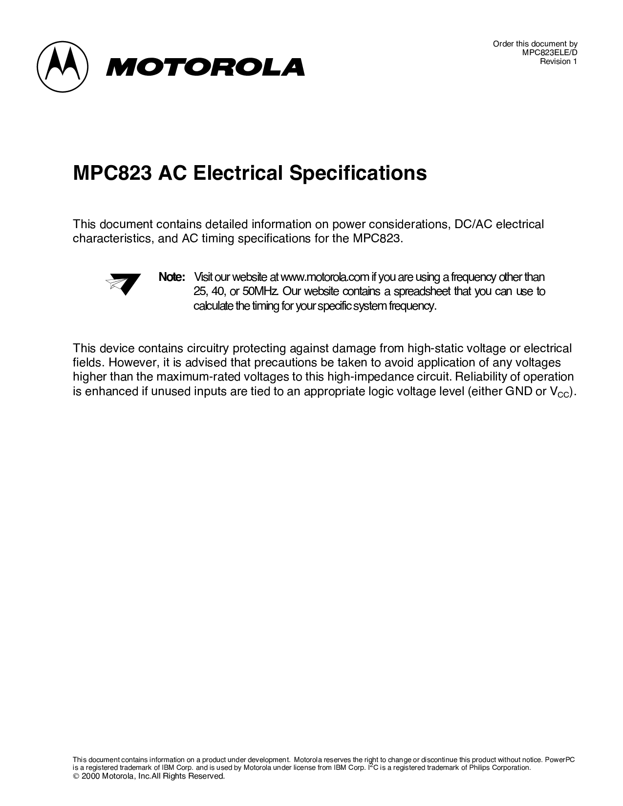 特性, 和 交流电 计时 规格 用于 这 mpc823.