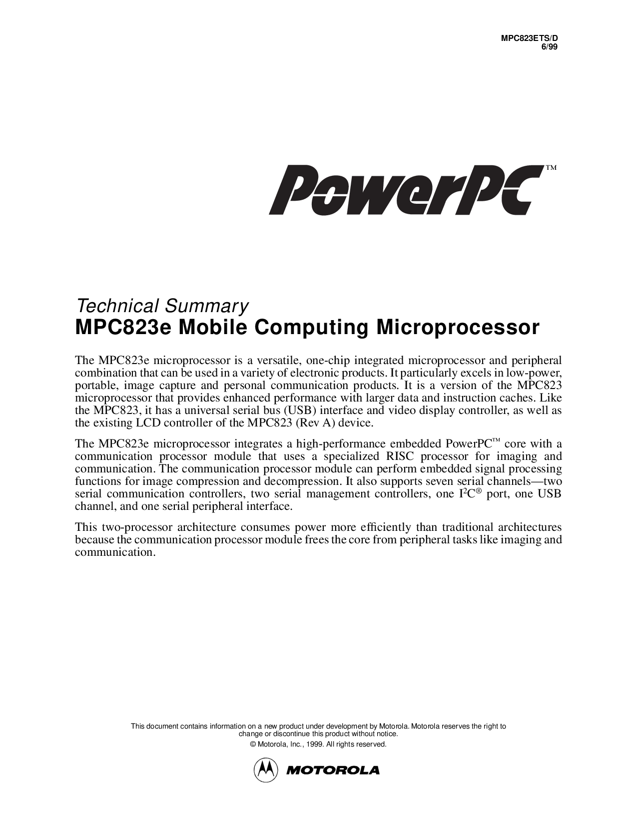 这 mpc823e 微处理器 是 一个 多才多艺, 单芯片 综合 微处理器 和 外围设备