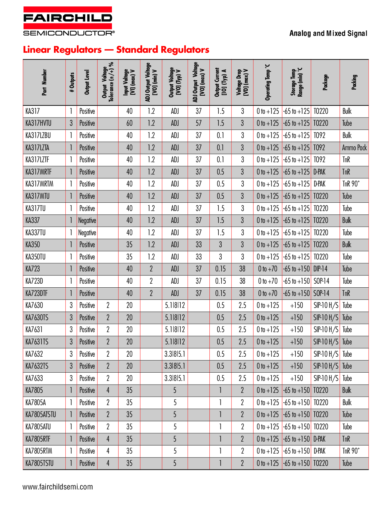 KA317HVTU 3 正 60 1.2 adj 57 1.5 3 0 至 +125 -65 至 +125 TO220 导管