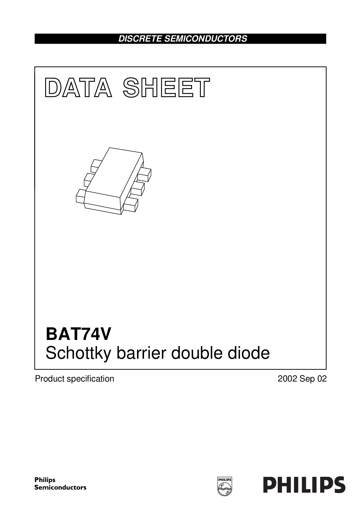 dat一个shEET 产品 Speci 2002 9月 02 离散 半导体 BAT74V 肖特基 护栏 双 二极管 M3D744 | |