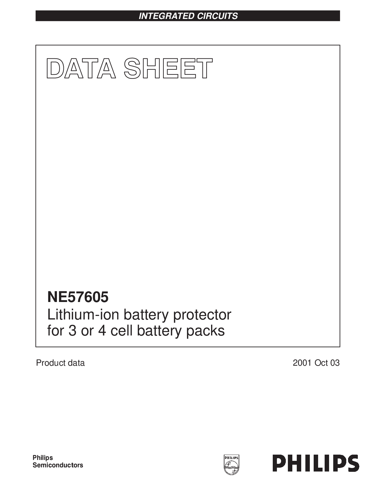 NE57605 锂离子 蓄电池 保护器 用于 3 或 4 细胞 蓄电池 空调组件 产品 数据 2001 oct 03 综合 电路 | |